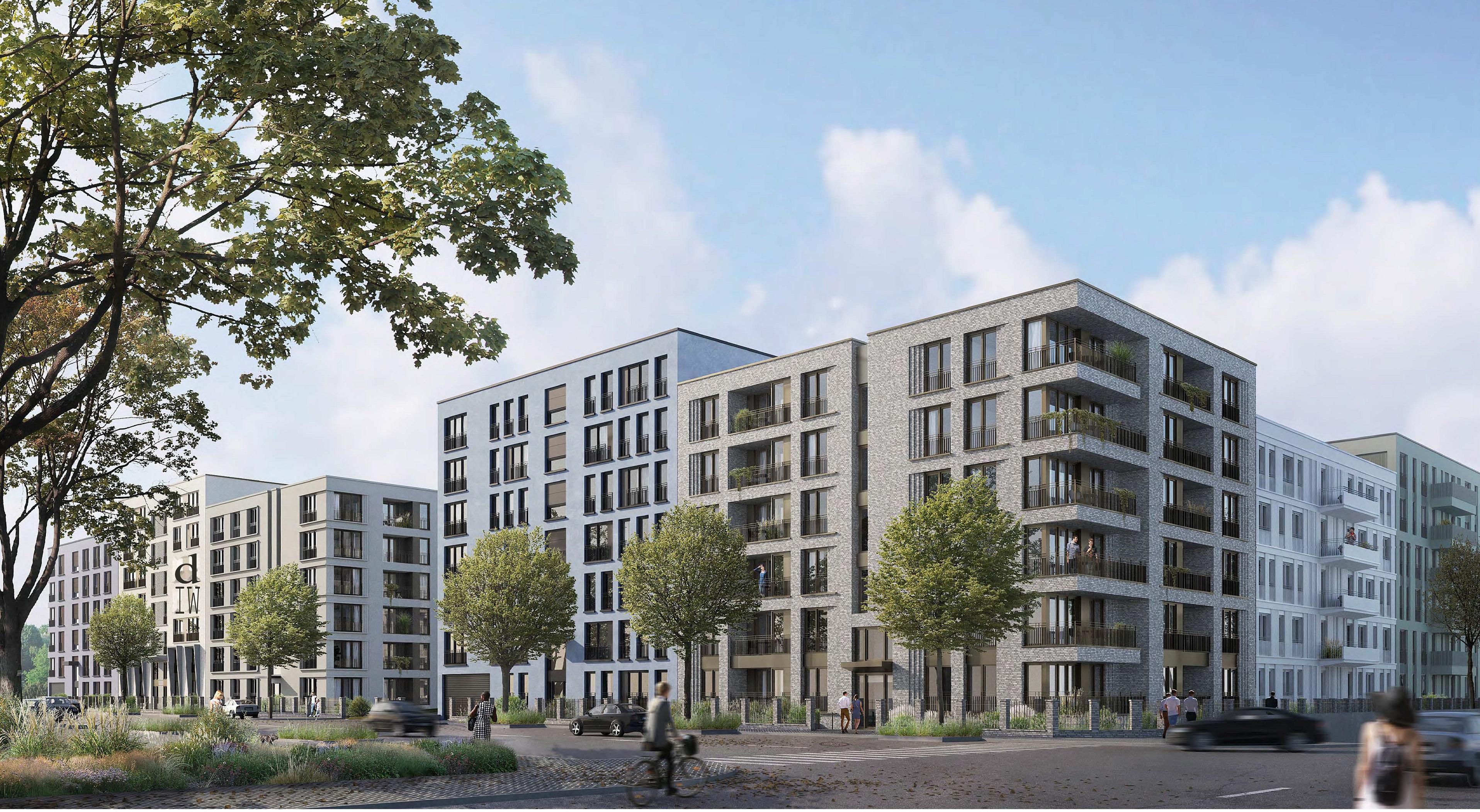 „Dieser besonders vielschichtige Entwurf passt nicht nur perfekt zu den Ansprüchen eines modernen Stadtquartiers, sondern auch zur Lage im neuen Quartier. Unser Baufeld befindet sich zentral im Herzen des Schönhof-Viertels, die Wohnungen werden aber trotzdem geschützt und ruhig liegen“, sagt Ralf Werner, Geschäftsführer von Instone Real Estate. Der bundesweit tätige Wohnentwickler wird das Baufeld A3 mit rund 160 Eigentumswohnungen mit zwei bis fünf Zimmern bebauen. Die dazugehörige Tiefgarage beinhaltet Stellplätze für PKW und Fahrräder.