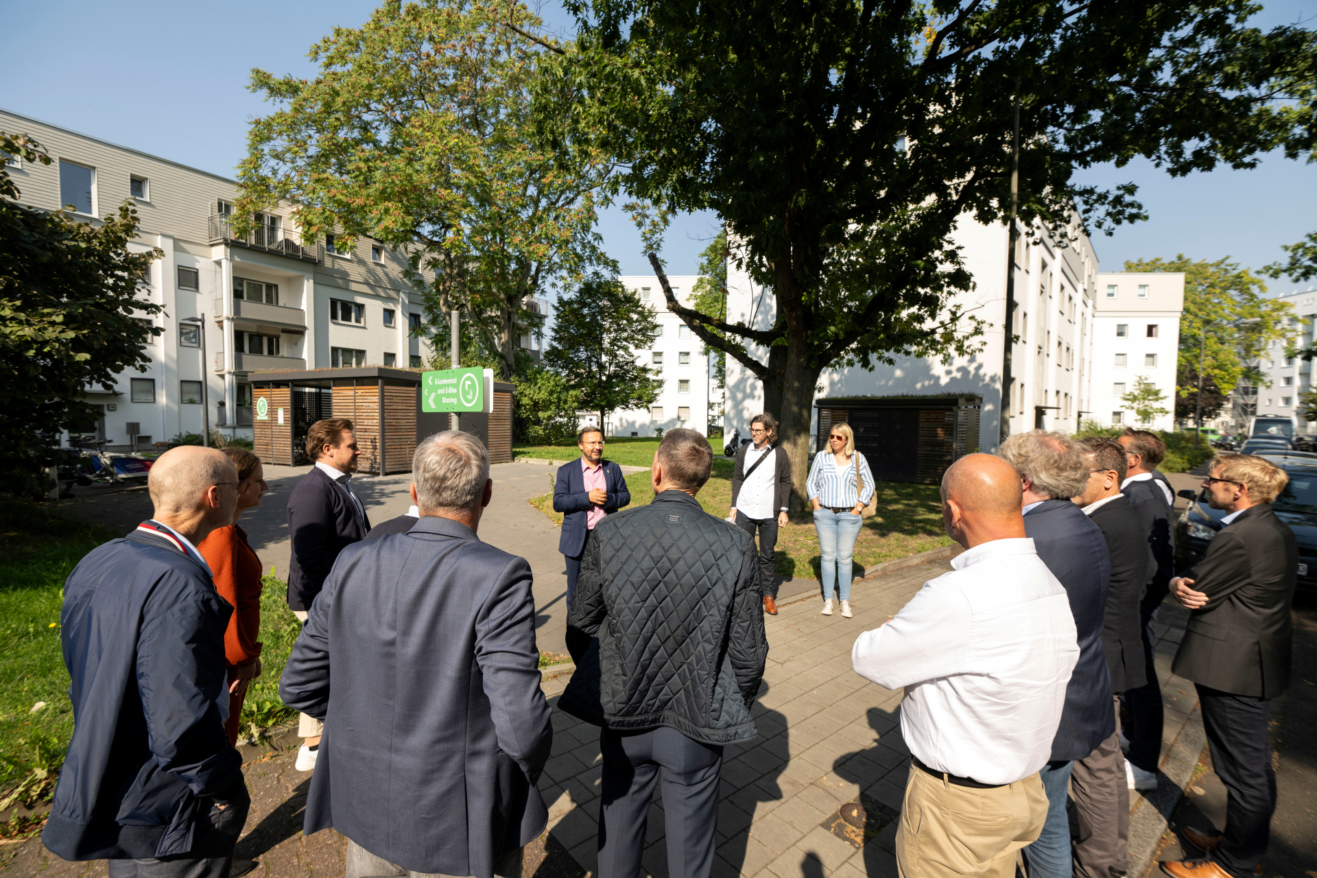Wenige Tage später waren die Technikausschüsse des VdW Niedersachsen-Bremen und Rheinland-Westfalen in Frankfurt zu Gast. Auch sie besichtigten die Fritz-Kissel-Siedlung, bekamen in kurzen Vorträgen vertiefende Infos und nahmen wertvolle Impulse zum Thema nachhaltige Modernisierung mit.