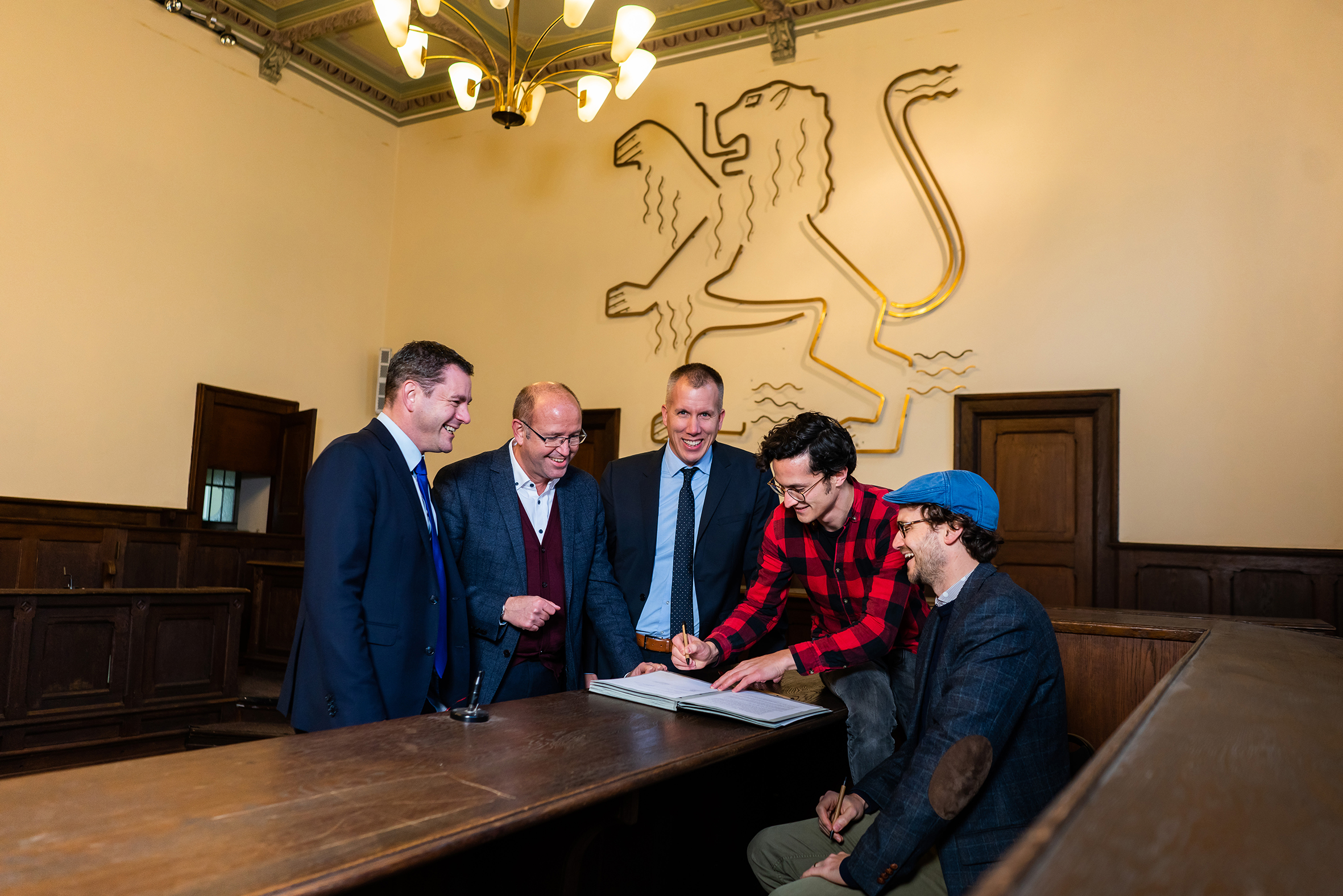 Tastmodell des Gerichtsareals um das Jahr 1897 enthüllt / Enthüllung mit NHW-Geschäftsführer Dr. Constantin Westphal.