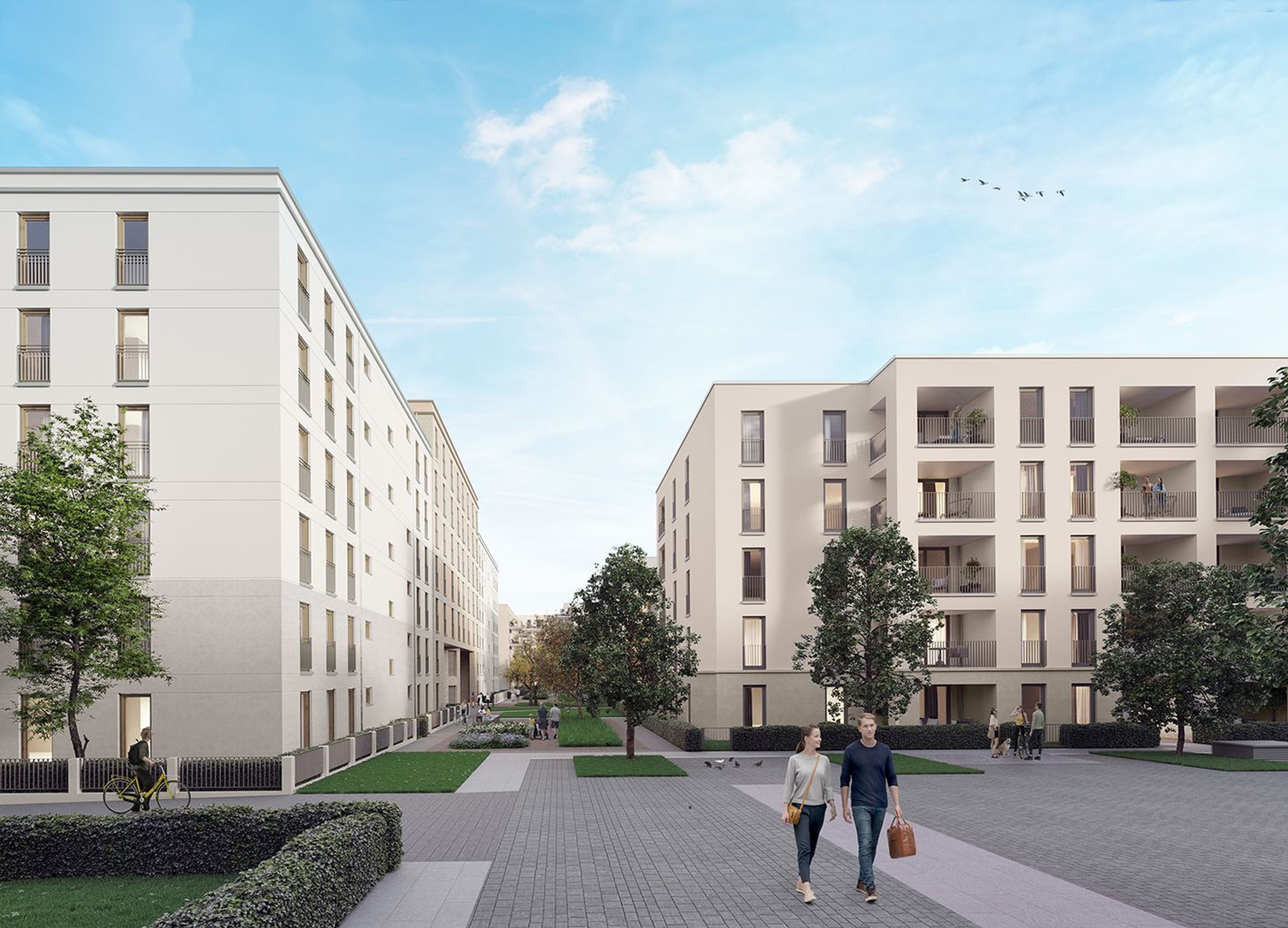 Mit dem Schönhof-Viertel entwickeln die Projektpartner NHW und Instone Real Estate bis 2025 ein neues Stadtquartier. Rund 2.000 Wohnungen werden auf dem Areal in Frankfurt-Bockenheim entstehen. Hinzu kommen eine Hybrid-Grundschule mit Sporthalle, über der in fünf Geschossen Wohnungen entstehen, fünf Kitas sowie Einzelhandels- und Gewerbeflächen inklusive Ladenflächen im Erdgeschoss und Gastronomie im Außenbereich. Zentrum des neuen Viertels ist der Quartiersplatz, der die Wohnquartiere im Osten und im Westen verbindet. Eine 27.000 Quadratmeter große Parkanlage wird sich wie ein grünes Band durch das Viertel ziehen.