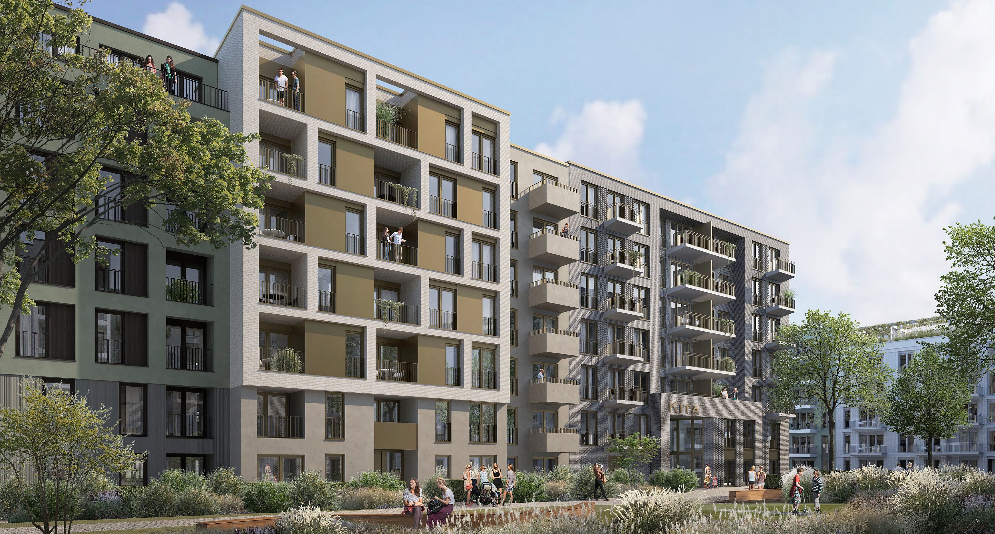 Auf dem Baufeld F des Schönhof-Viertels entstehen geförderte und frei finanzierte Wohnungen sowie eine Kita.