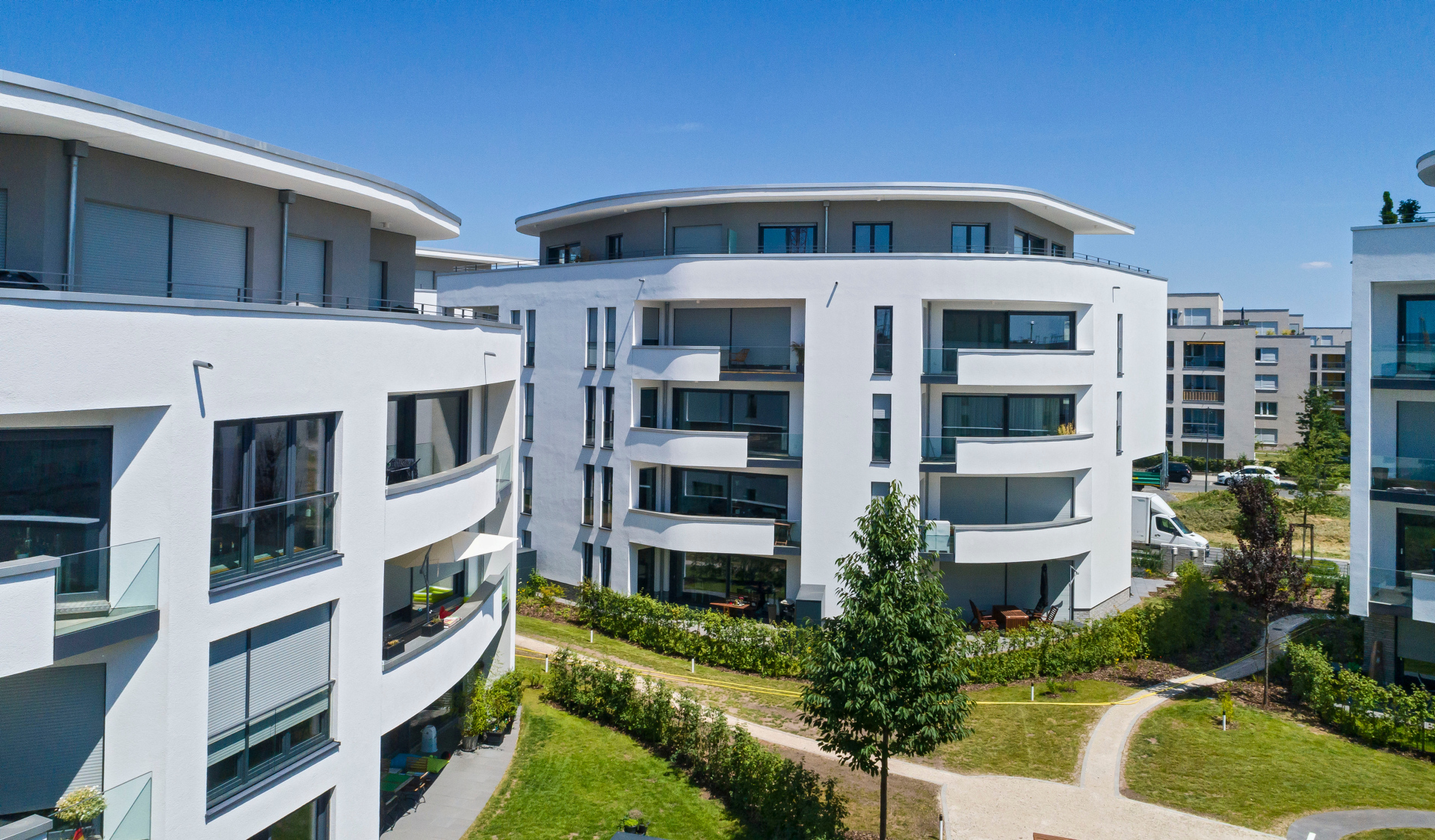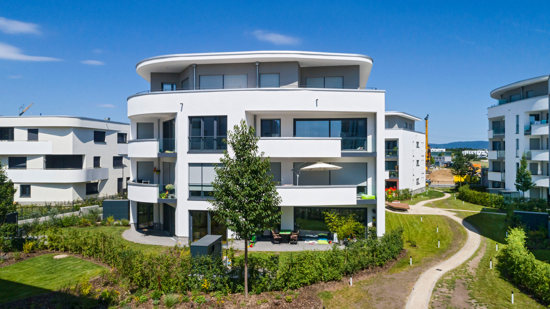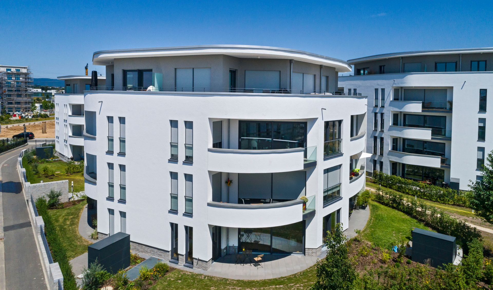 Im Riedberger Westflügel ist eine hochwertige Wohnungseigentumsanlage mit zwei verschiedenen Gebäudetypen entstanden. Die exklusive Eigentumsanlage besteht aus 71 attraktiven Wohnungen in sechs frei stehenden Einzelhäusern mit gemeinsamer Tiefgarage. Die außergewöhnlichen Formen und Linien der Häuser, die interessanten Wohnungsgrundrisse und deren exklusive Ausstattung bieten jedem Bewohner ein individuelles Lebensgefühl.