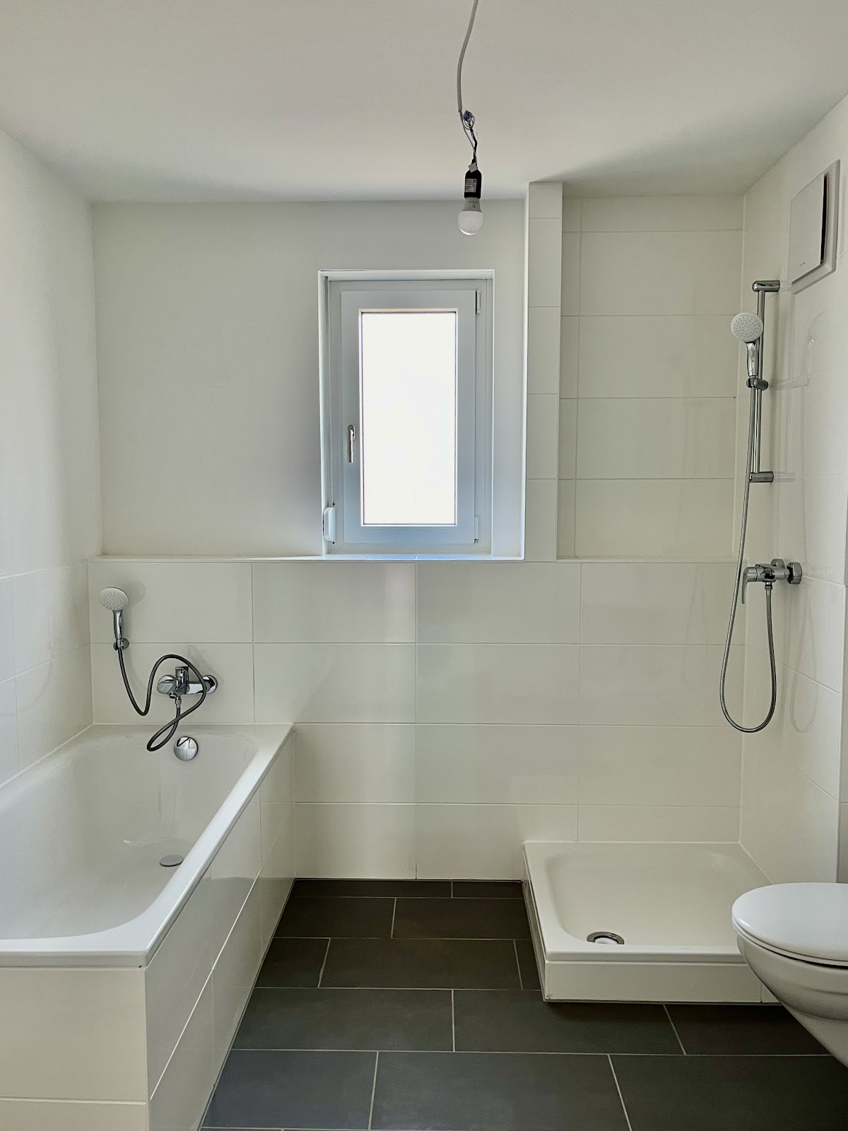 Die Badezimmer begeistern mit einer eleganten Kombination aus anthrazitfarbenen Bodenfliesen und hellen, freundlichen Wandfliesen. Ein zusätzlicher Handtuchheizkörper sowie Badewanne und/oder Dusche machen Ihr Bad zu einem privaten Wellnessbereich. Entspannen Sie auf Ihrem eigenen Balkon, Ihrer Loggia oder Terrasse und genießen Sie besonders in den warmen Sommermonaten Ihren persönlichen Freiraum unter freiem Himmel.