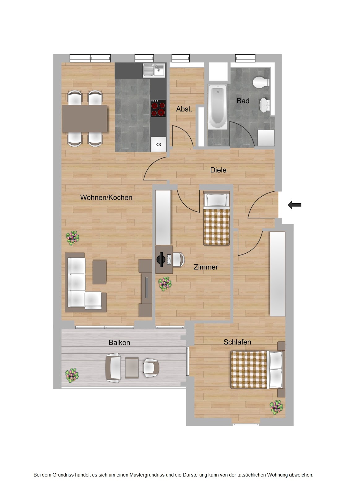 Hinweis: Bei dieser Anzeige handelt es sich um eine Beispielwohnung. Insgesamt stehen von diesem Wohnungstyp weitere Wohnungen zur Verfügung. Daher kann es zu Abweichungen bei der Wohnungslage, sowie zu Abweichungen in den Bildern und Grundrissen kommen.