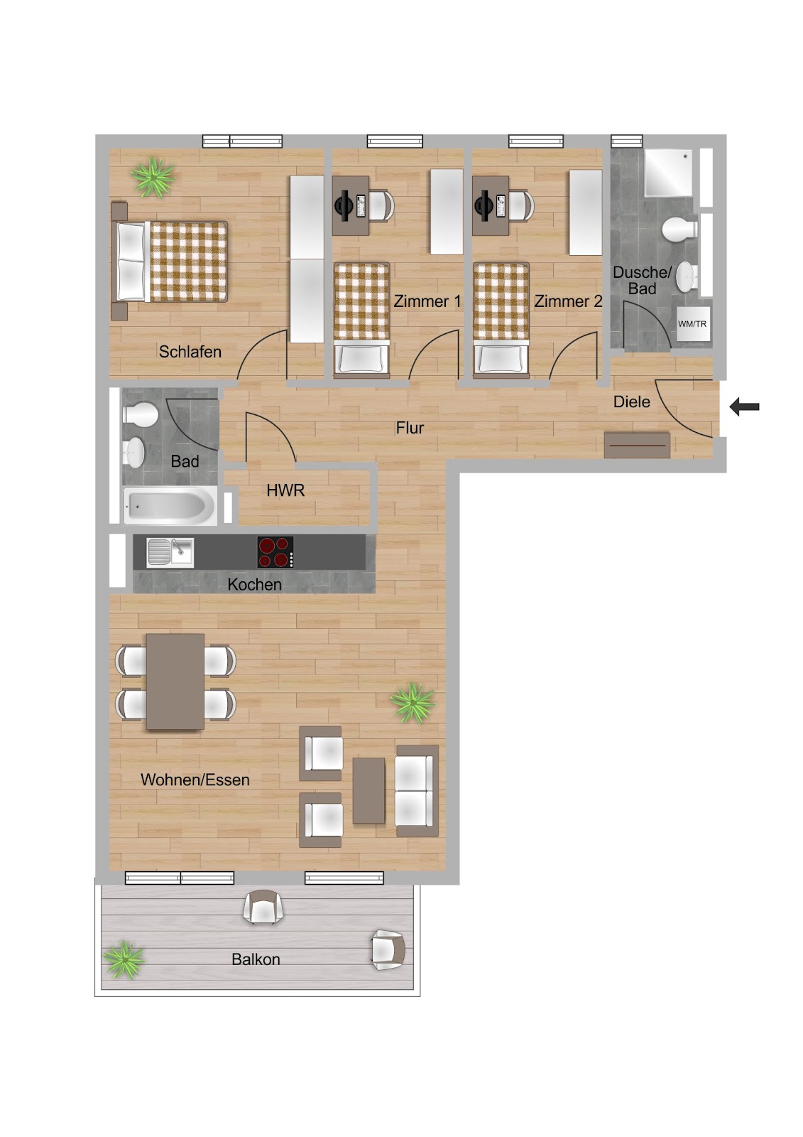 Hinweis: Bei dieser Wohnung handelt es sich um eine Beispielwohnung, es sind aktuell weitere Wohnungstypen verfügbar.