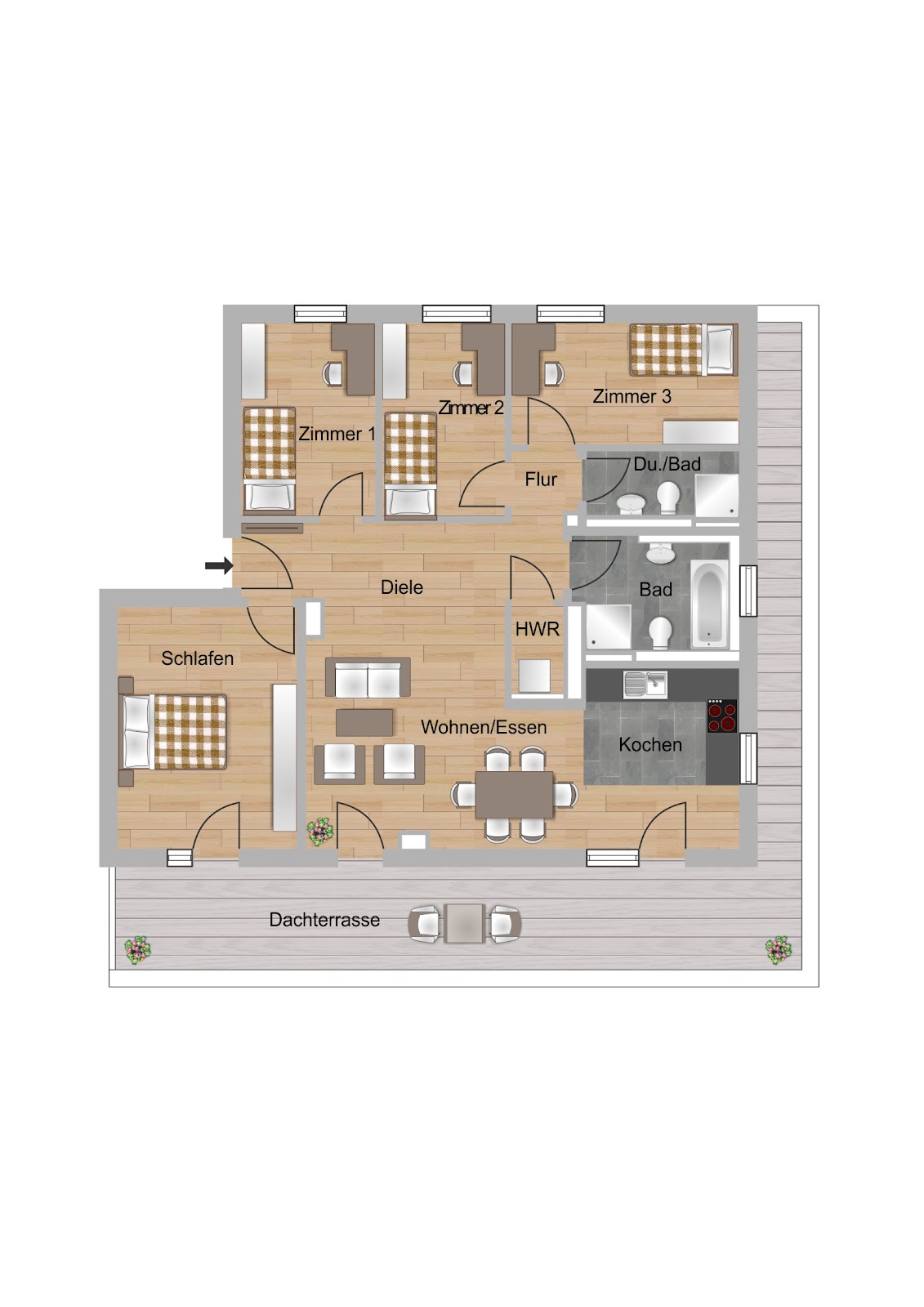 Hinweis: Bei dieser Wohnung handelt es sich um eine Beispielwohnung, es sind aktuell weitere Wohnungstypen verfügbar.