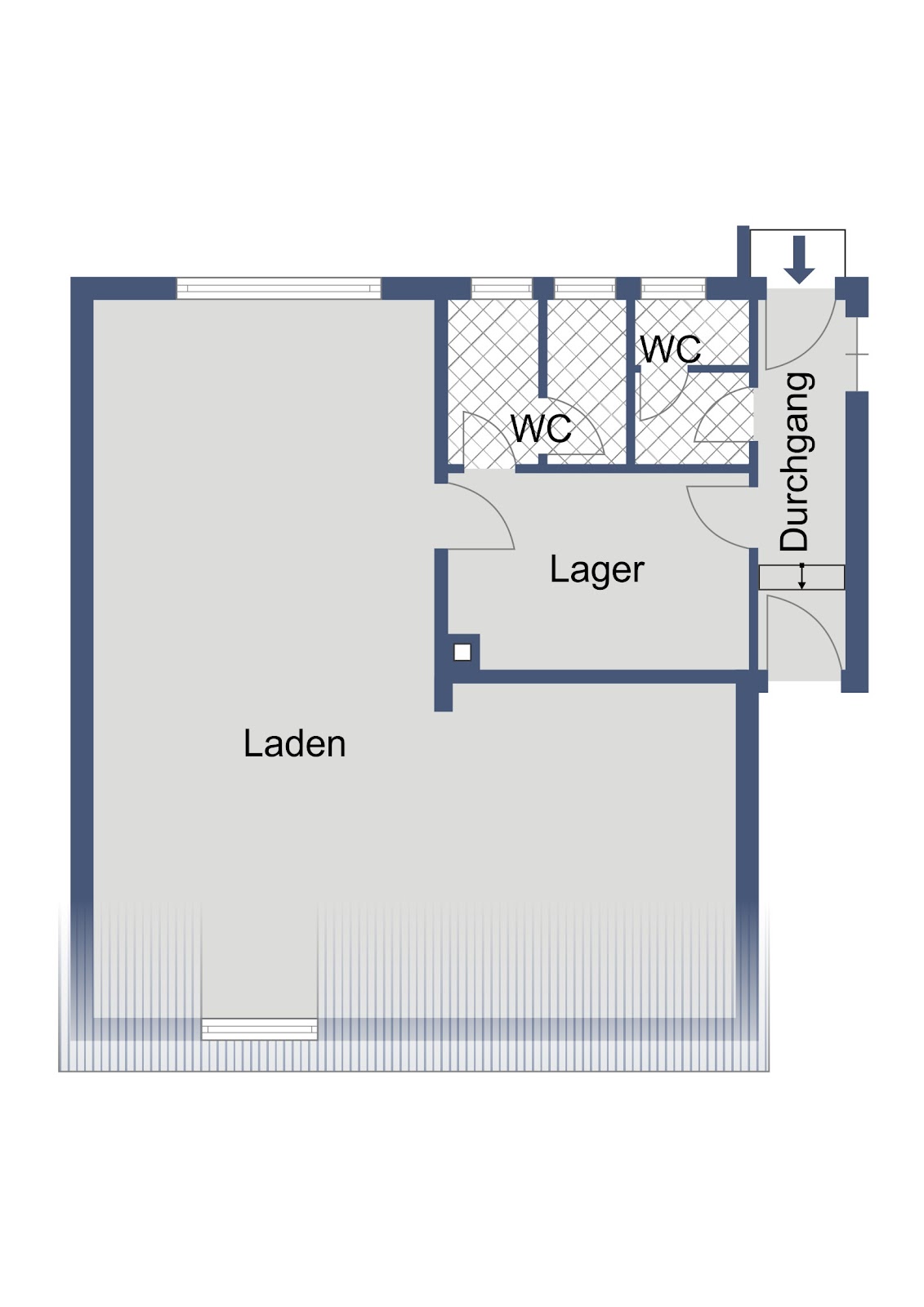 Von der Ladenfläche haben Sie einen Zugang zum WC und zu einem kleinen Abstellraum.